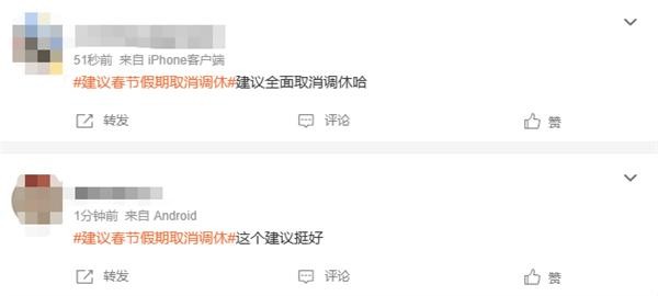 该建议获得了大量网友点赞支持,有网友表示:“这才是真专家。”“很有必要,中国人的传统就是团圆过年,千里奔袭,炕还没有睡热乎就又该返程了。”“直接取消所有调休好了。”