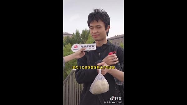 “加油,欢迎来到北京大学,我也不会说别的。”衣着朴素,甚至有点不修边幅的韦东奕腼腆地这样推介北京大学。