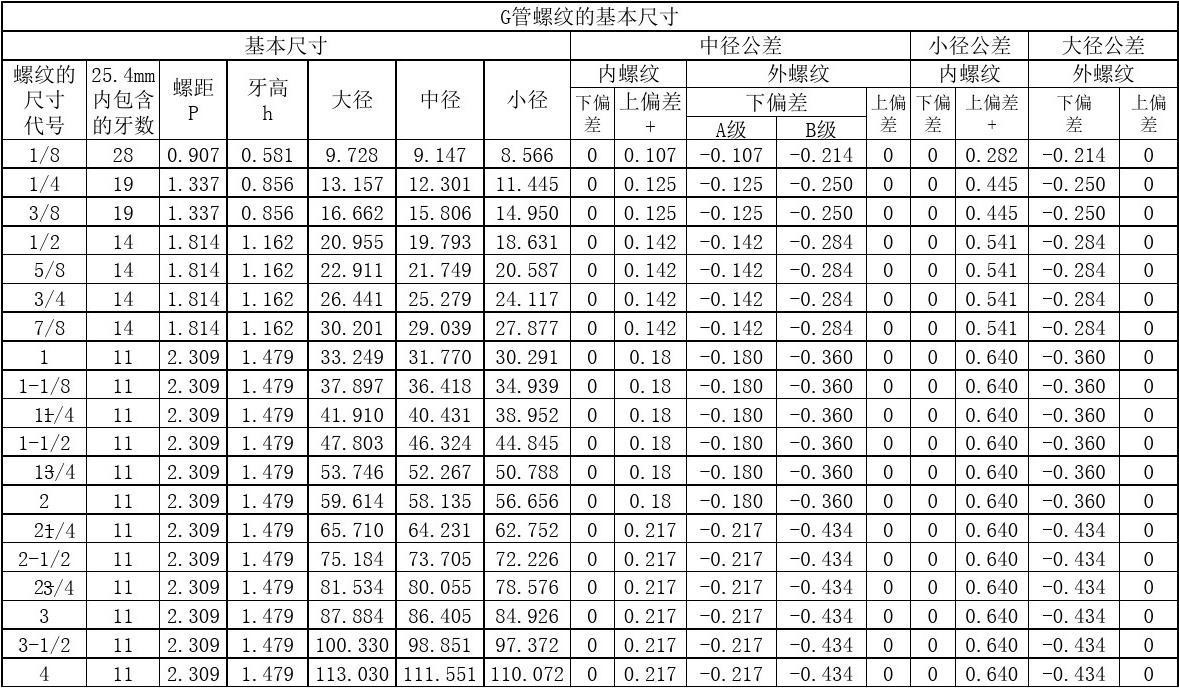 G 是 55 度非螺纹密封管螺纹,属惠氏螺纹家族.标记为 G 代表圆柱螺纹.国家标准可查阅 GB/T7307-2001 ,与Rp相同。G螺纹不具有密封性,需要使用密封剂来进行密封。