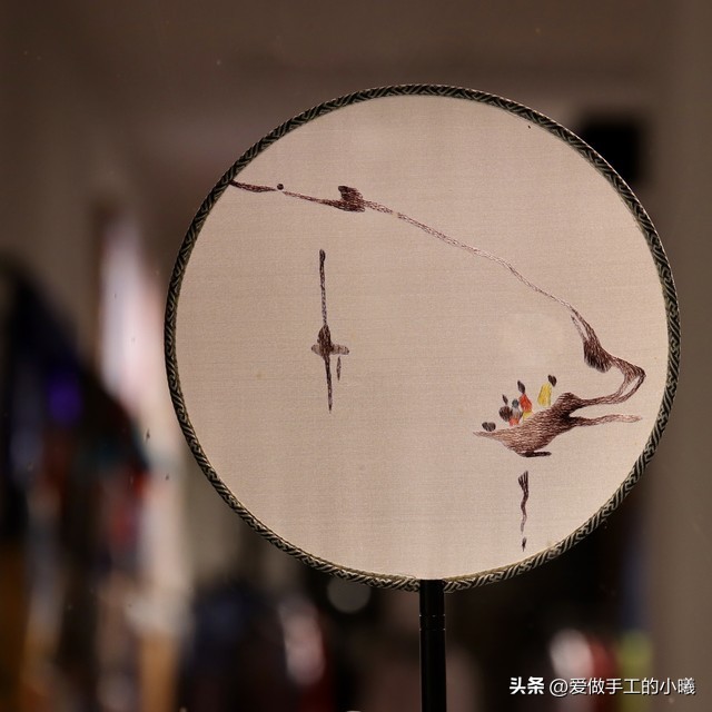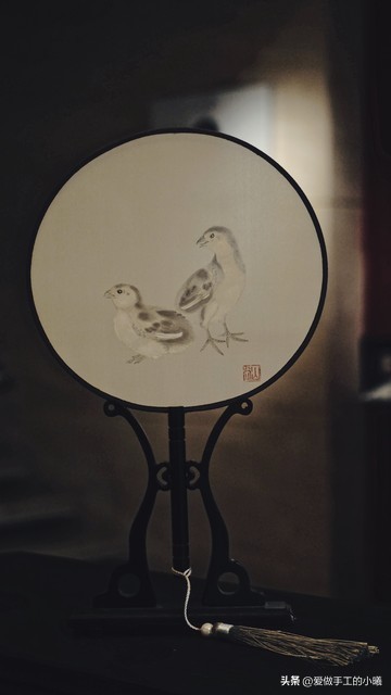 日本团扇的扇骨又细又密,还有一节裸露在外,大家要注意区分。