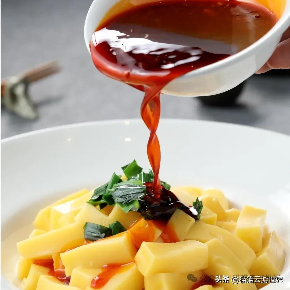搅团可以理解成面粉制作的“面皮冻”,物质匮乏的时候,人们以此充饥。如今,依然是一道非常特色的美食。将“面皮冻”切成小块,搭配蘸水,有点像凉粉口感,适合夏天吃。