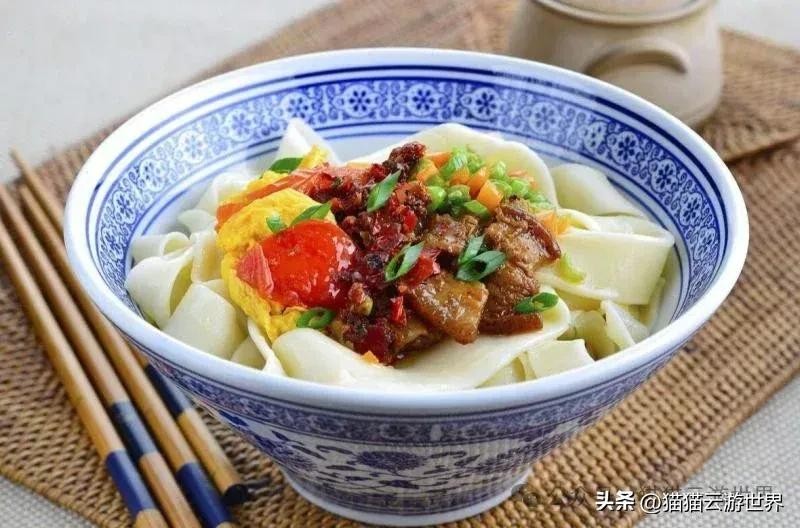 biangbiang面是陕西八大怪之一,面条宽如裤带,吃起来十分有嚼劲。搭配油泼辣子和醋,再泼点热油,太香了。