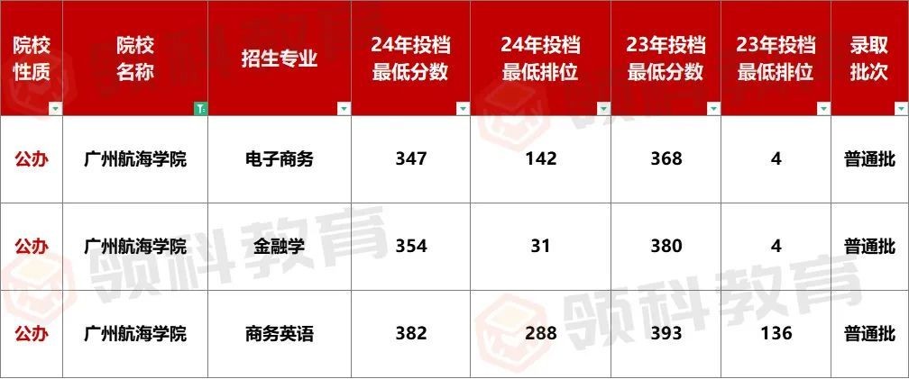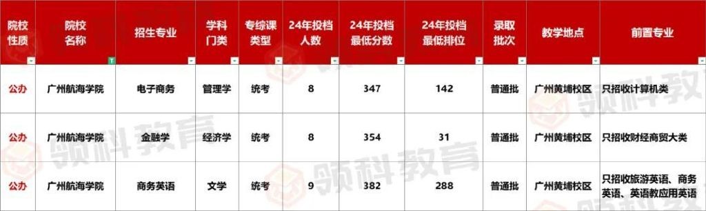 单看24年的投档最低分数,想要保险上岸至少也得347分。这个分数在公办院校里不算特别高,甚至比一些民办院校的部分专业还要低。所以有意向广航的同学,抓紧啦。