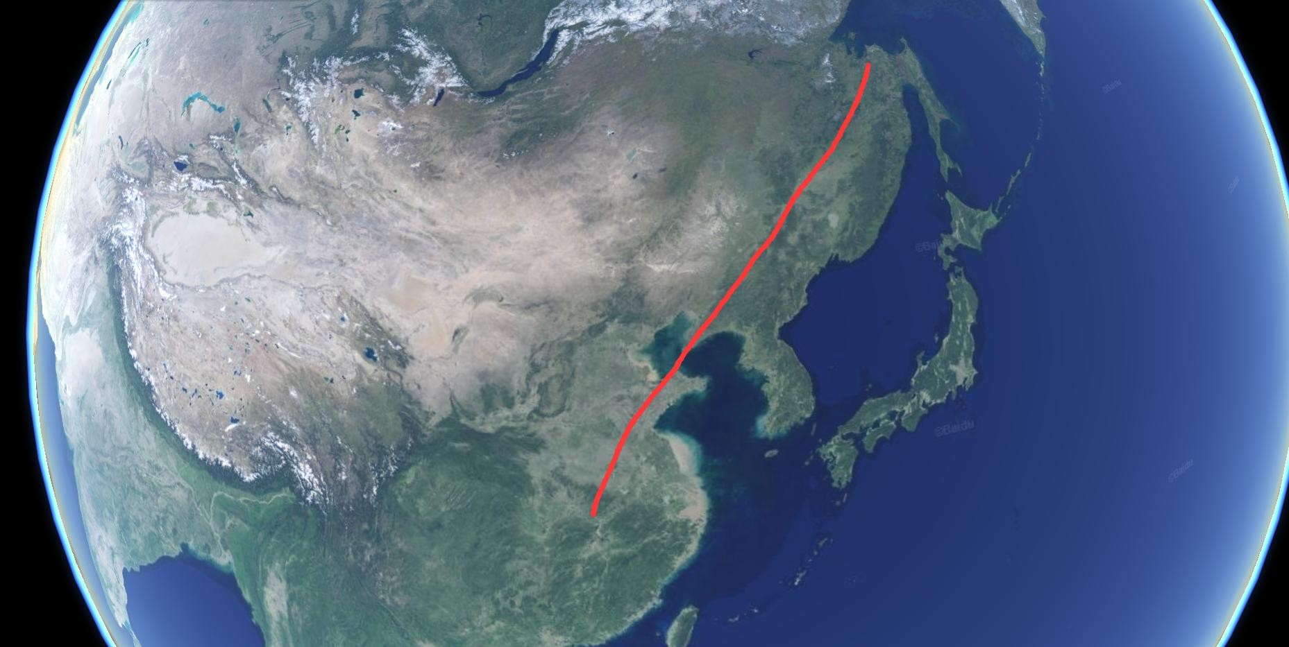 由于《北三经》中不仅记载了“空桑之山”,还记载了“空桑之水”,所以,我们可以视其为首部,连接山东,我们发现“空桑”恰与郯庐断裂带走向一致: