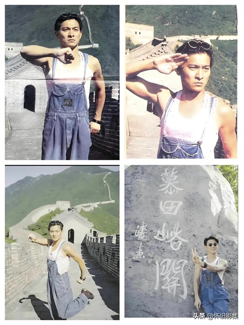 1994年,香港“四大天王”之一刘德华于北京拍戏,闲暇游览长城。照片中,他从慕田峪关进入,此处“慕田峪关”题字者为溥仪亲弟溥杰。刘德华身着背带裤,在当时颇为另类,洋溢着青春帅气,留下不同姿势的影像,展现出别样风采。