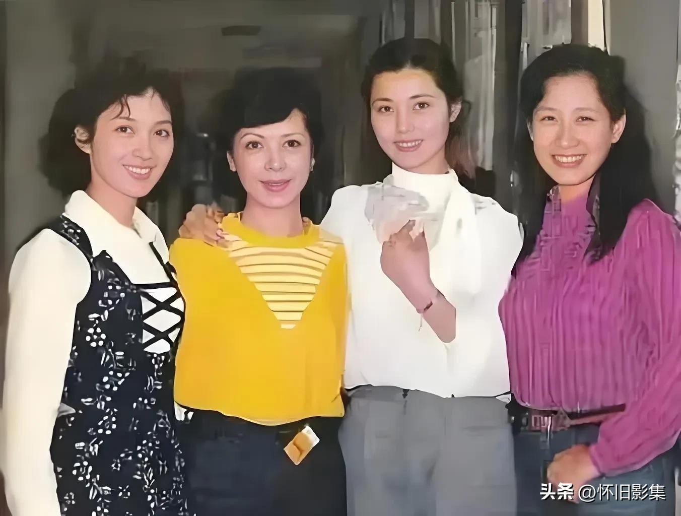 这张照片拍摄于八十年代,画面从左至右分别是著名影星龚雪、香港影星陈思思、演员姜黎黎、歌唱演员沈小岑。她们身着各具风格的服装,面带笑容,展现出那个时代文艺界人士的风采。龚雪在影视领域有出色表现;陈思思是香港知名影星;姜黎黎以多部影视作品被观众熟知;沈小岑在歌唱方面成绩斐然。合影见证了她们的友谊与当时文艺界的交流。