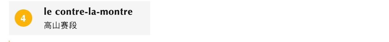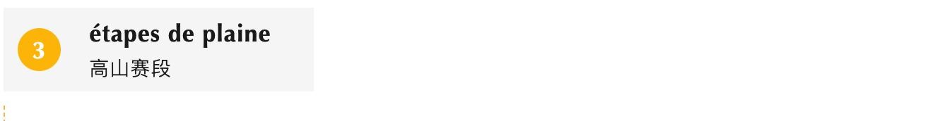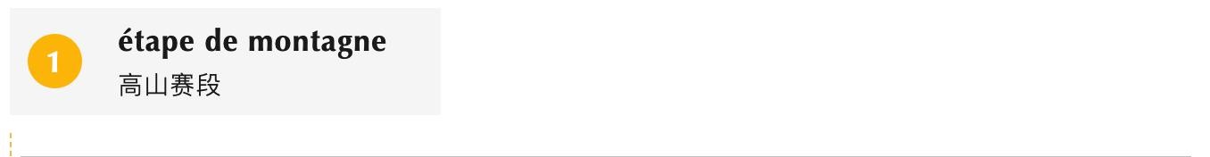 étape de montagne 高山赛段étape accidentée 丘陵赛段étape de plaine 平地赛段le contre-la-montre par équipe 团体计时赛段les contre-la-montre individuels 个人计时赛段
