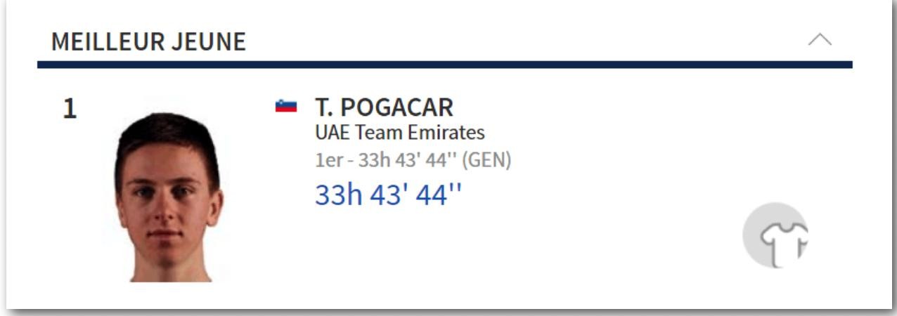 在总排名中排名最高的25岁以下的选手可以获得“新人王”的称号,并身着maillot blanc白色骑行衫。