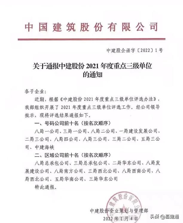 2021年中建三级单位前十名出炉!中建八局一公司连续5年稳居排头