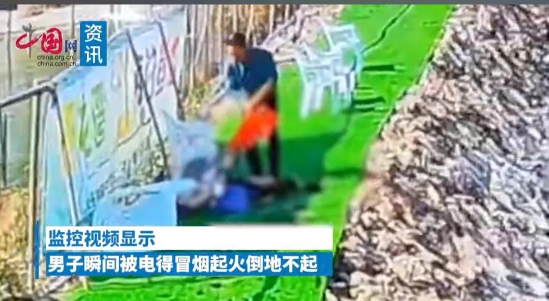 1月3日,上海一处钓鱼场突发事故,一男子在钓鱼时不慎触碰高压线,瞬间冒烟起火倒地不起。