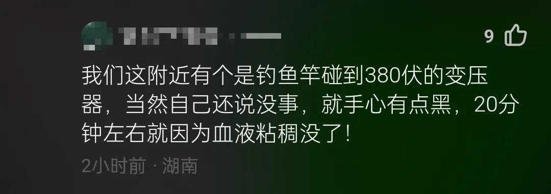 钓鱼触碰高压线,男子瞬间燃爆,拷问该鱼场为何设如此荒唐钓位?