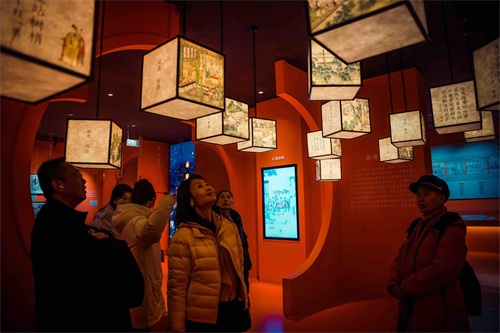 在“锦官入梦·蜀韵红楼——《红楼梦》数字艺术展”,许多家长正带着孩子,一起走进如梦似幻的“红楼梦境”。《红楼梦》是中国文学的瑰宝,它以丰满的人物形象、精妙的故事结构、广博的知识内涵,构建了一座巍峨的文学大厦,高高地矗立在世界文学之林。据了解,该展览是基于原著的情节内容,以清末画家孙温、孙允谟合绘的全本《红楼梦》绘本(国家一级文物)为基础进行呈现,集中展示绘本《红楼梦》中的近40幅作品,以贴近大众的通俗视角,从不同内容维度解读红楼。“这个展览质量很高,在看展览的过程中,我们更加深入地了解了《红楼梦》中的人物故事,对书中的内容也有了不一样的认识。”观众方媛仔细看着每一幅画作,不时还会拿出手机拍下作品的细节,“展览的造景古色古香,还有许多数字体验装置,体验感很好。”据悉,该展览将持续至2026年2月。