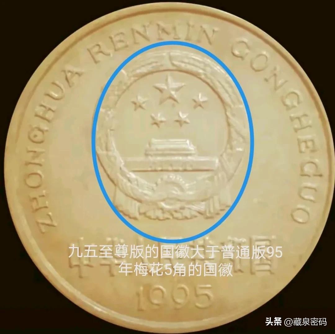1995年九五至尊版单枚10—15元(币面无磕碰,字体图案清晰,国徽整体大于普通版梅花5角硬币)。