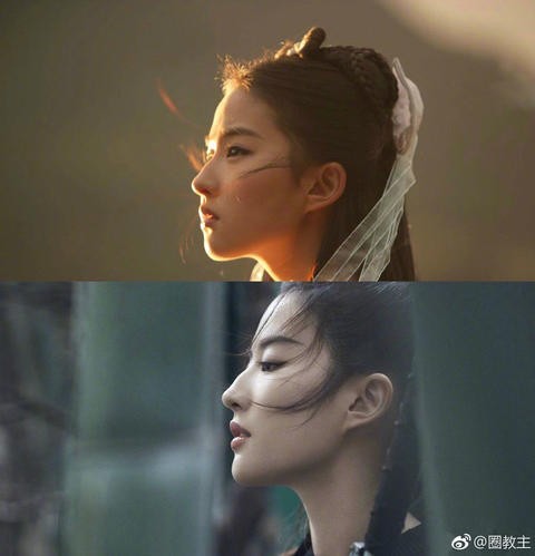 宣布刘亦菲出演这个角色的时候,粉丝们就很兴奋,把花木兰人物的半边脸和刘亦菲的脸拼起来,一下就觉得这个角色非她莫属了。