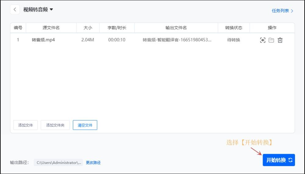 步骤三:任务栏视频上传成功后,选择【开始转换】。
