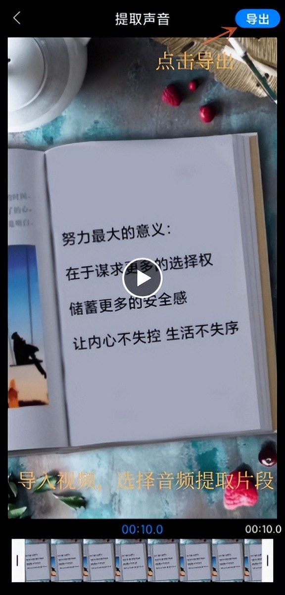 步骤二:从相册中选择视频,导入后截取需要提取音频的视频片段。系统默认提取整个视频音频。最后选择【导入】。
