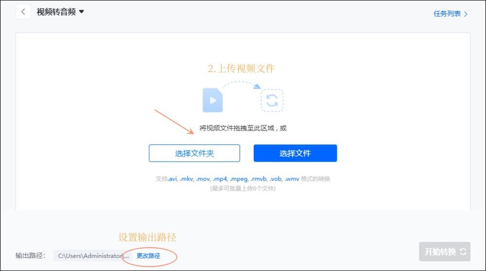 步骤二:上传视频文件到页面中,拖拽或点击上传,多种格式的视频文件都是支持上传的。