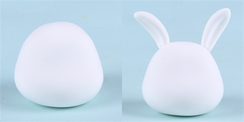 开始做小兔子,白色粘土做出小兔子的头部,再做两只长耳朵粘在头顶。