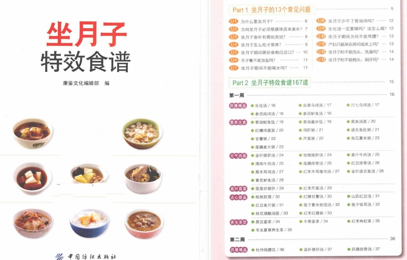 今天曼姐就分享一套适合妈妈们坐月子时吃的食谱,书中先对妈妈们坐月子时常遇到的13个问题进行了解答,然后介绍了167道月子菜。