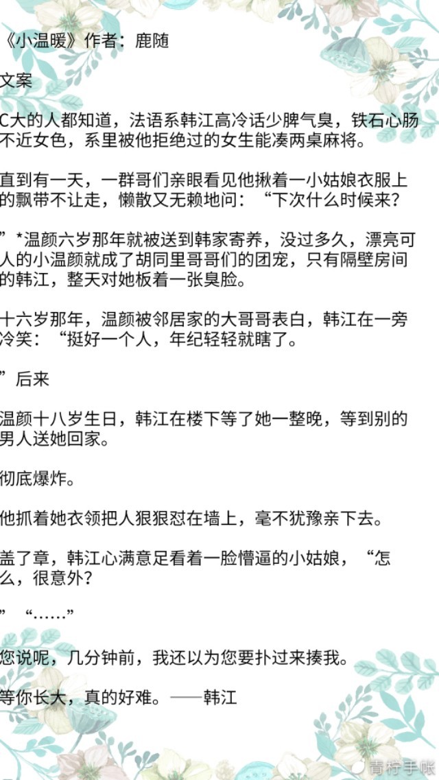 书不是全文甜,而且还有虐的部分,女主被校园霸凌而且女主也被网络暴力,而且也是很倔强的性格。前期两人之间有误会,但是后来误会解除了。