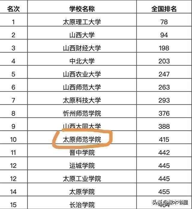 太原师院在整个山西省,大概排名在前10名左右。软科2020中国高校排名,太原师院位列全国第419名,校友会大学排名第415名。
