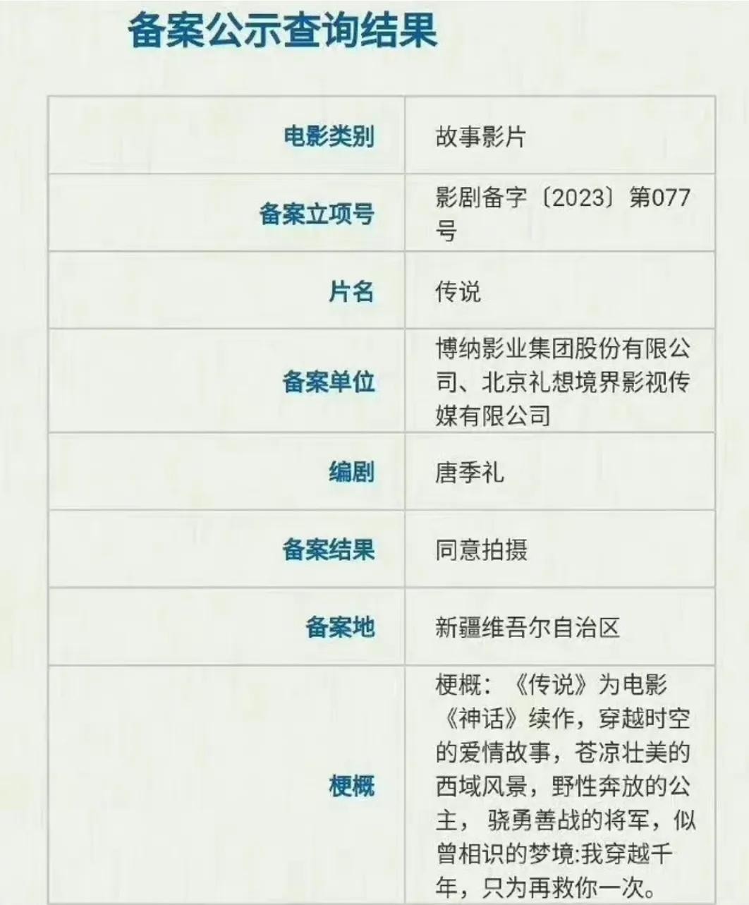 近日,电影宣发部公布了《神话》的续作,《神话2》,又名《传说》,也是讲述的穿越时空的爱情故事!拍摄地定在新疆!