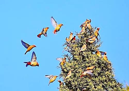 太平鸟~体态优美,鸣声清柔的冬季园林观赏鸟