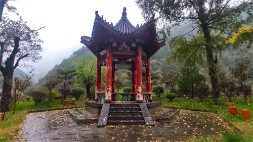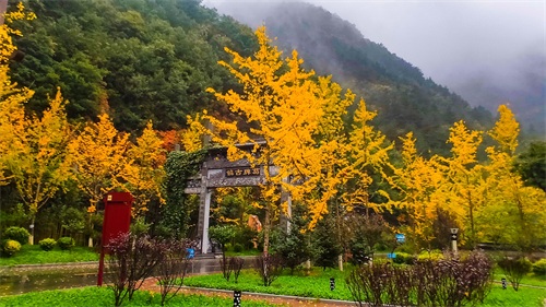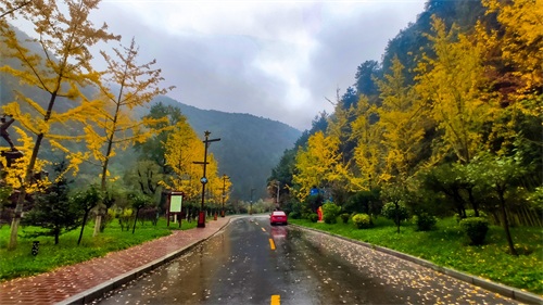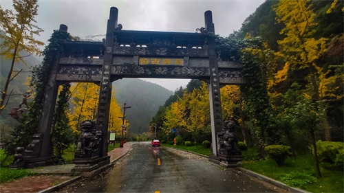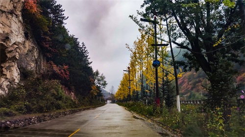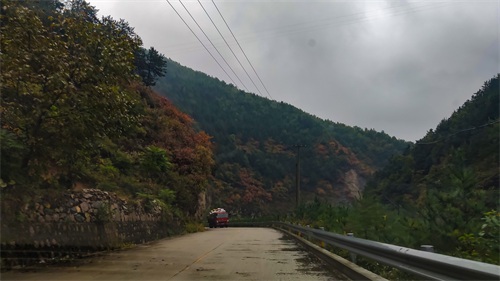 现在进入我们周末一日游行程,我们早上从西安走的还是阴天,但到了山里就下起了雨。蓝葛线是蓝田到葛牌镇的公路,路况是非常不错的,在秋天这个五彩缤纷的季节里,可以一路欣赏漫山遍野的红叶。即使周日下着雨,但一路的风景还是非常美的。我们第一站到达辋川溶洞,工作人员说因为下雨,害怕有落石,所以临时关闭了。