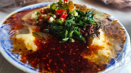 没逛成景区,我们在景区门口吃了中饭,与许多景区不同的是,这里的饭菜都是蓝田当地的小吃,有洋芋糍粑、荞面饸烙、蒸面皮、煎饼、蚂蚱菜大饼、稀饭等,很简单但很地道,味道也很好,价格比西安城里的还低,两个人吃饱喝足总共才花了20多块钱。