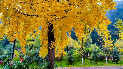 银杏一定是秋天最美好的话题,去年10月到11月,我几乎走遍了西安及附近所有的银杏林,但今年,第一次遇见这么美好的银杏却是在秦岭深处的葛牌古镇,金灿灿的银杏把葛牌古镇装点得非常美好。