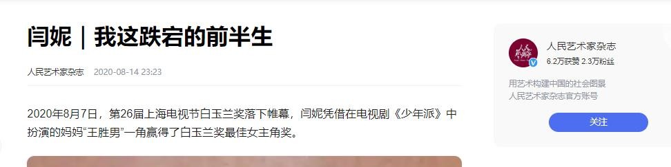 人民艺术家杂志2020-08-14 闫妮|我这跌宕的前半生