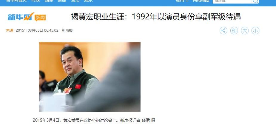 新华网 2015-3-5 揭黄宏职业生涯:1992年以演员身份享副军级待遇