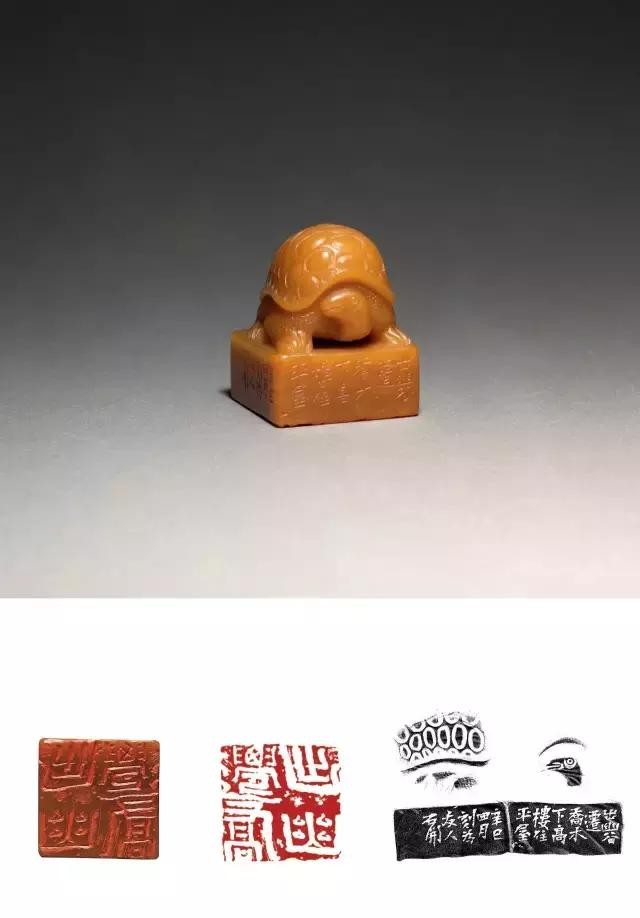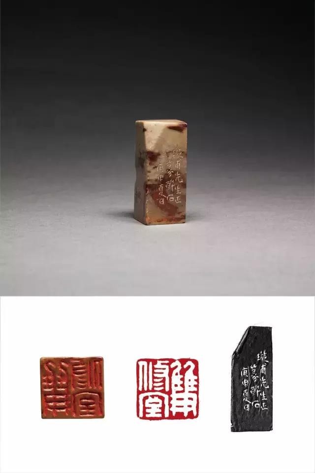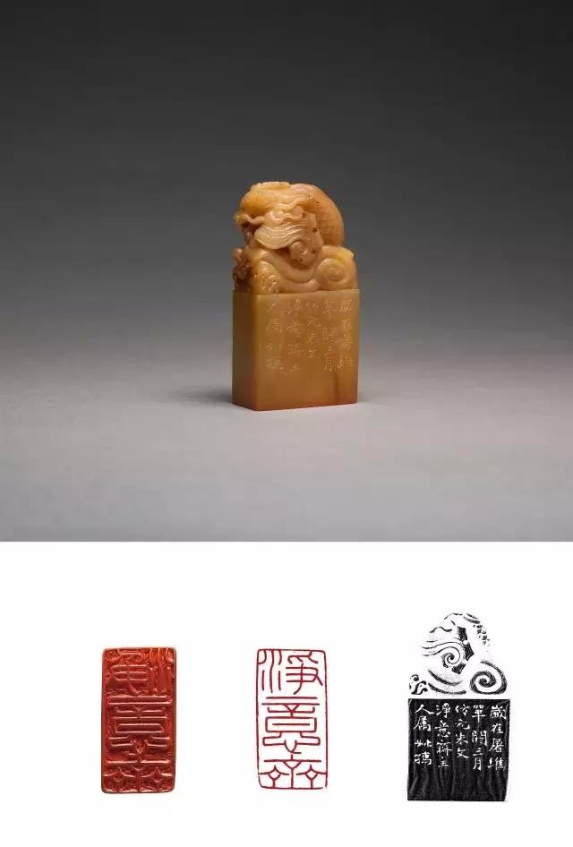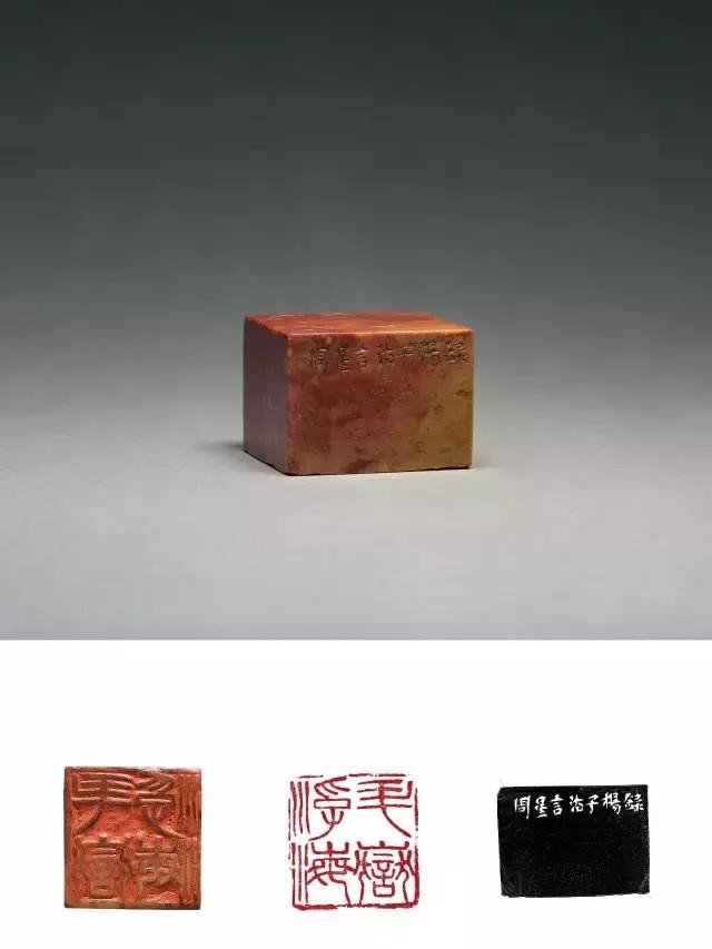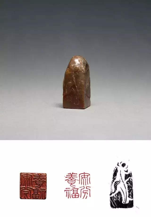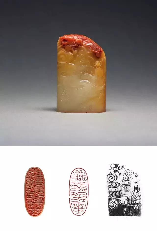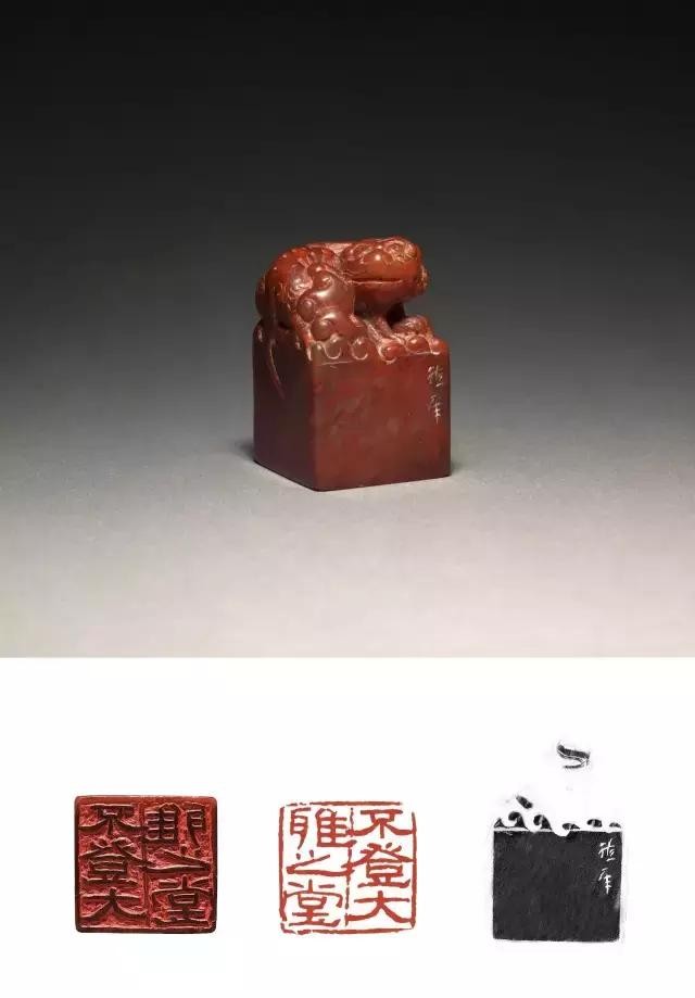 钱瘦铁刻 寿山红花芙蓉石龙钮方章