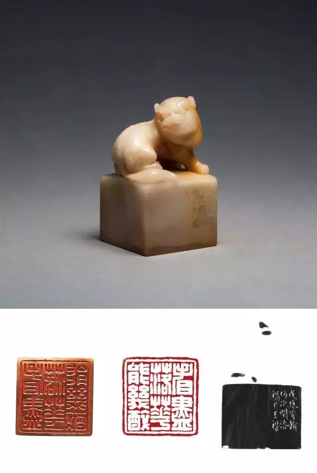 邹梦禅刻 寿山白芙蓉兽钮印章