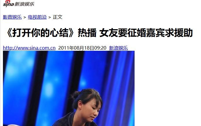 《打开你的心结》热播 女友要征婚嘉宾求援助_影音娱乐_新浪网