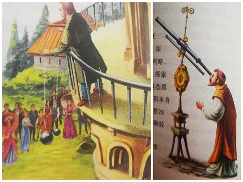 1608年,伽利略受到一个可以将所视物品放大的玩具的启发,制成了世界上第一台天文望远镜。一天晚上,他拿起天文望远镜对准月亮,发现月亮上面有高山、深谷,还有火山的裂痕。这一发现鼓舞了伽利略,此后,他几乎每晚都用望远镜观察天空,探索宇宙的奥秘。他发现,太阳里面有黑点,这些黑点的位置在不断地变动。因此,他断定太阳本身也在自转,甚至推算出太阳自转一周大约要28天。后来他在观察木星时,还发现木星有4颗较大的卫星,且它们在围绕着木星公转。