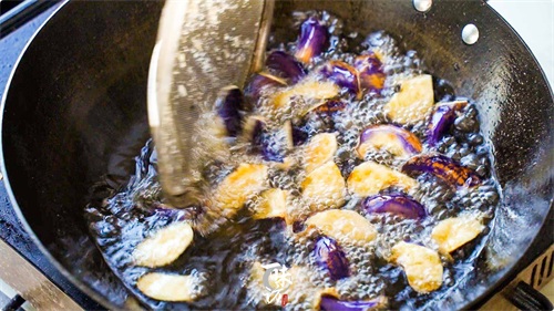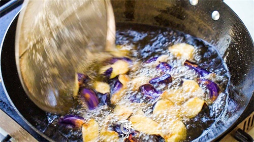 2 炸茄子这块儿比较繁琐一点,毕竟需要炸两次,这就需要具体观察火候了,二次炸制一定要特别到位才行。