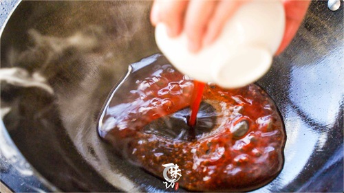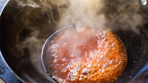 锅内留有底油,油红后加入糖醋汁,当糖醋汁起大泡后。