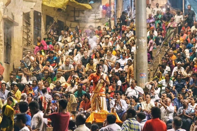 图为印度瓦拉纳西恒河夜祭仪式。印度宗教神话中动不动就是大千世界,百千万劫,也使得百十年的现世历史渺小得不值一提。 (南方周末记者 冯飞/图)