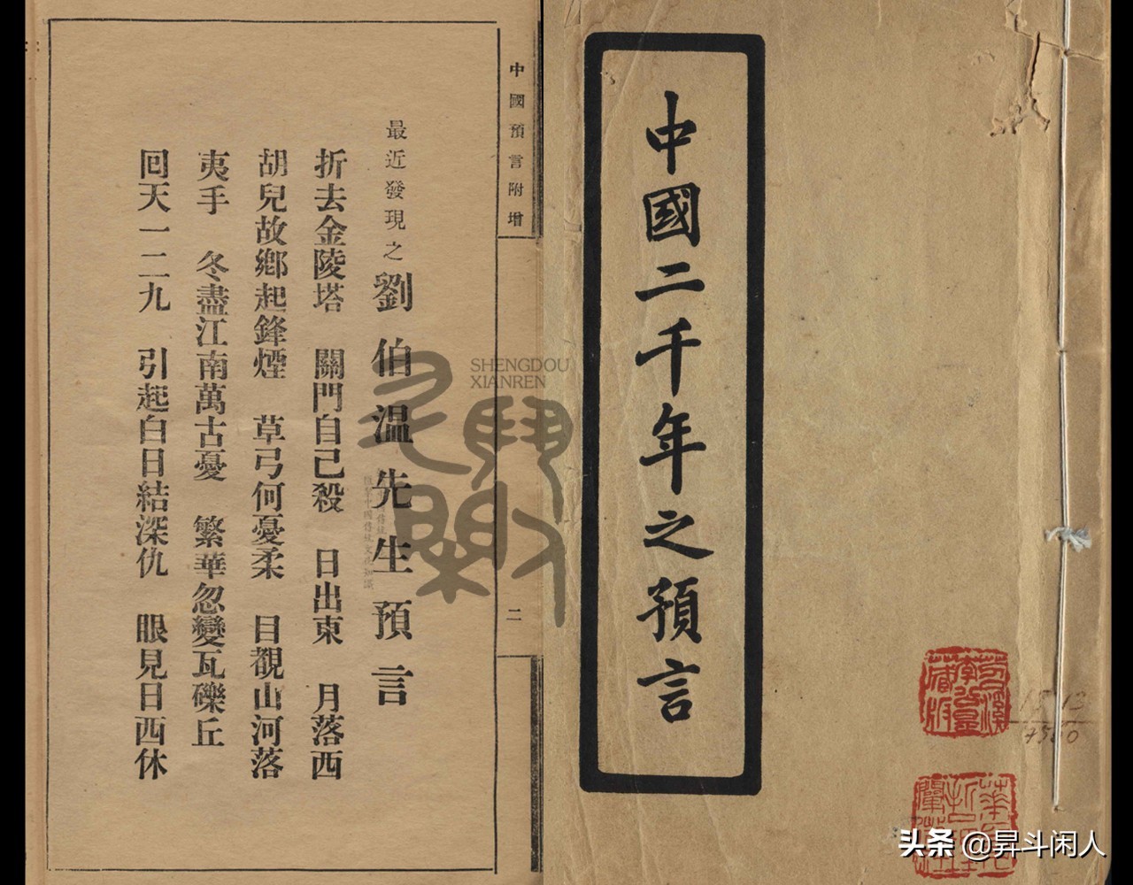 这一段文字在明清两代没有任何记录,民国二十六年也就是1937年以前也没有任何记录,1938年开始渐渐在坊间流传。所以,它的作者根本不是刘伯温。1938年10月上海华夏哲理阐微社出版的《中国二千年前之预言》中收录了这段文字,标题为“最近发现之刘伯温先生预言”。此后坊间渐渐以“刘伯温金陵塔藏碑”称呼这段文字,一时间引来民众竞相议论。而在当时一些有识之士对于这段文字则是会心一笑,但心中却不免有些悲凉。就字面意思来看,也能看懂个七七八八。实际上这段文字讲述的是民国二十年到民国二十七年的一段历史,也就是公元1931年至1938年。