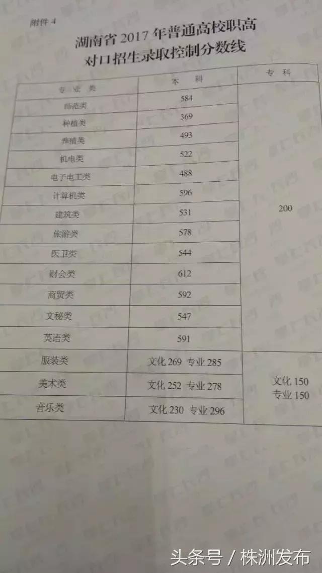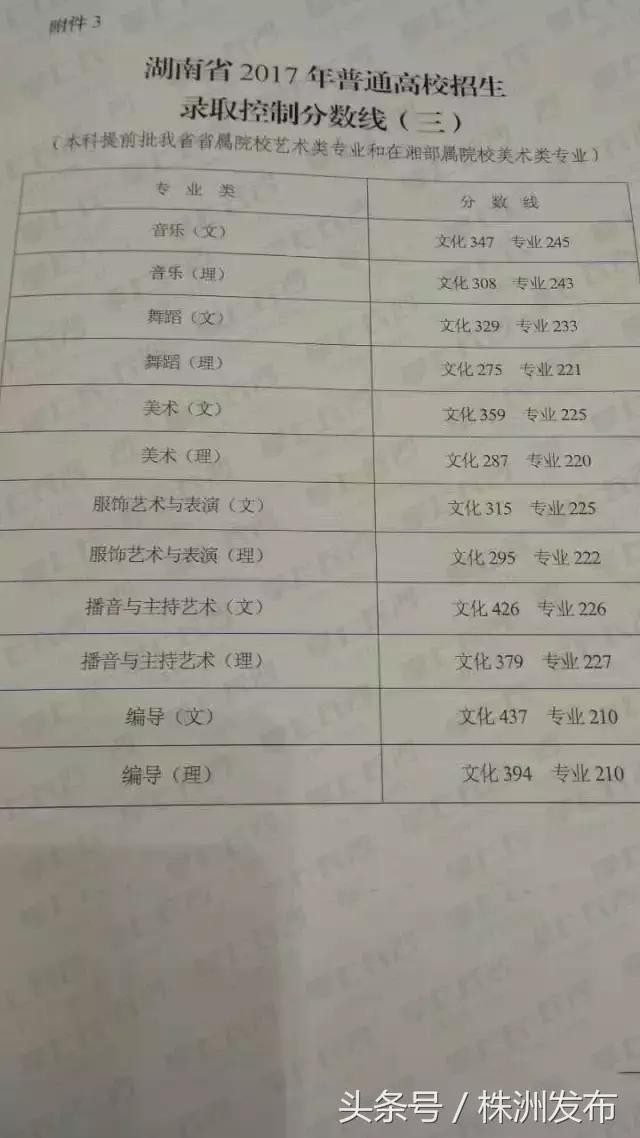 今日上午,湖南省教育考试院正式向社会公布了2017年湖南高考各批次录取控制分数线。(详见表格)