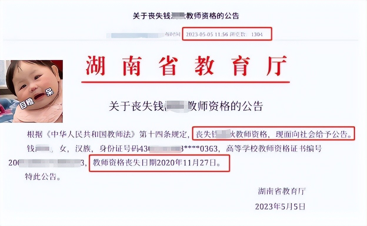 就在大家纷纷支持两位教授的关键时候,突然又迎来了“反转”。教授的真实身份被扒出来了,原来网红教授钱一原名钱满秋,早在2020年11月被相关部门取消了教师资格证书。