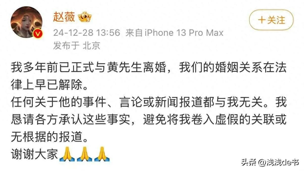 为避免惹火上身,也是出于自保,赵薇在这个节点选择公布跟黄有龙早已离婚的事情。