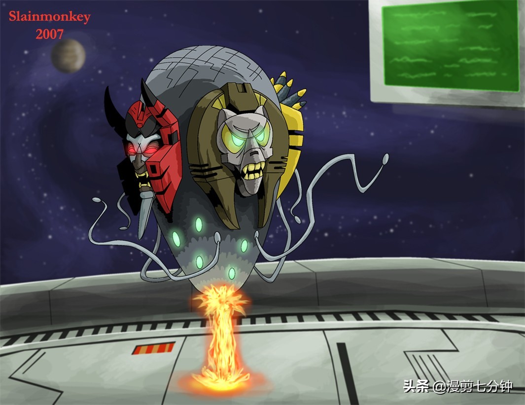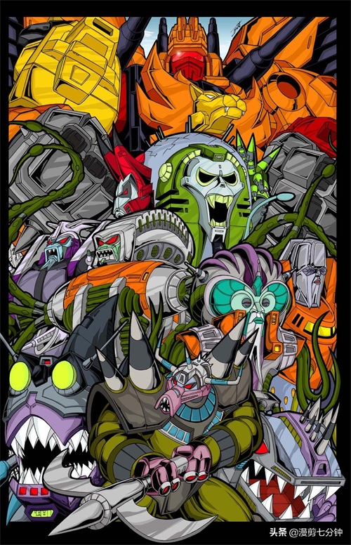 在变形金刚的世界中,有着让人眼花缭乱的各种面孔。无论是喜欢戴口罩的擎天柱,还是骂起人来嘴巴比人类还流利的威震天。都有着可以让我们接受的面孔,至少不会让我们讨厌。然而,变形金刚的世界里却还有一张脸,他是所有人童年的噩梦。我们不愿回忆它,甚至害怕回忆他。那个长着五张脸的怪物,哪怕你只见过一次,就会让你记住它并且种下一辈子的噩梦。没错,这个怪物就是五面怪。大家好,我是漫剪七分钟,今天我们来聊聊那个,可能是所有人都不想聊的怪物。五面怪。