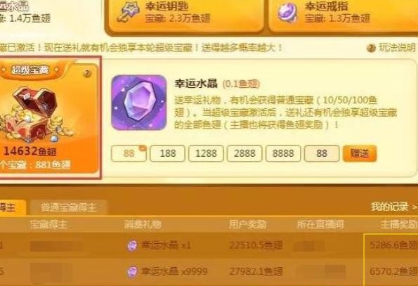 如果经常看直播的网友,应该知道“超级宝藏”这么一个活动,奖池非常丰厚,它跟抽奖的形式又不太一样。系统随机设定在XXXX个,如果某个用户,刚好送出礼物达到那个数字,就能获得超级宝藏,里面应该是虚拟货币,可用作于消费刷礼物。
