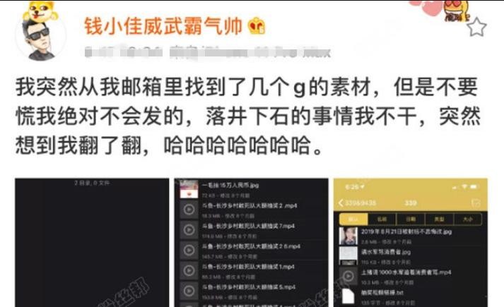 钱小佳作为前斗鱼主播,目前是处于被“欺压”,无法公开直播,但是他听闻这件消息后,在社交平台上发布动态,称其邮箱里有几个G的素材,难道都是内幕?可以置之于死的那种实锤证据?