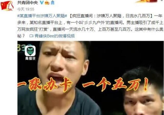 权威媒体制作一段视频,素材来源于人气户外主播“339户外”,在直播吸引成千上万的网友,对其进行疯狂的“打赏”。然而这个打赏行为,是带有引诱性质,一张办卡有机会获得五万块,办卡只需要六块,这就是利用了贪婪的人性,从而做出一天几十万,甚至上百万的流水。