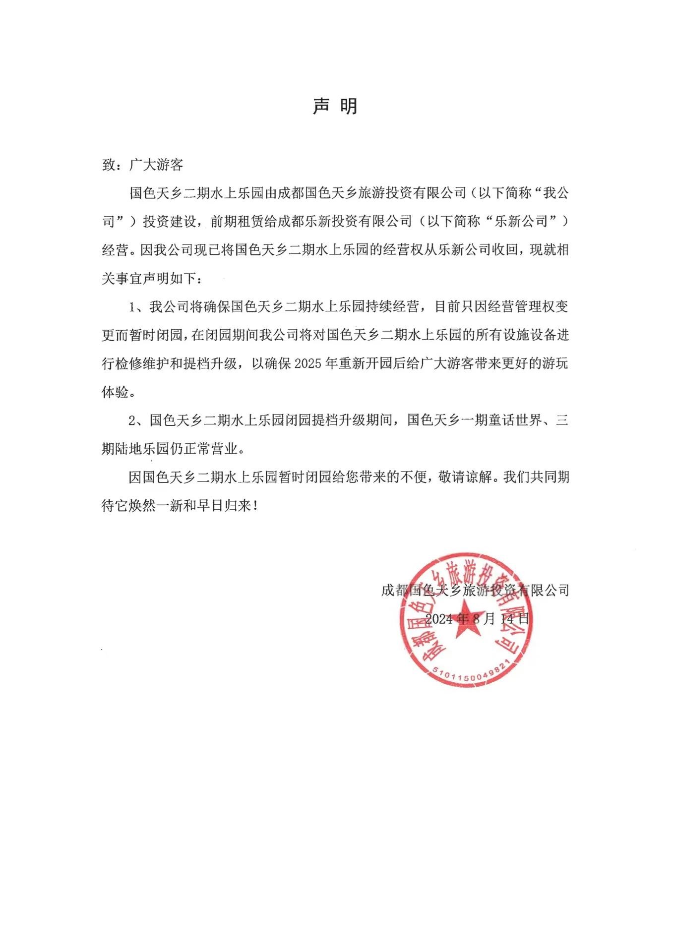 位于成都温江区的国色天香水上乐园毫无征兆,