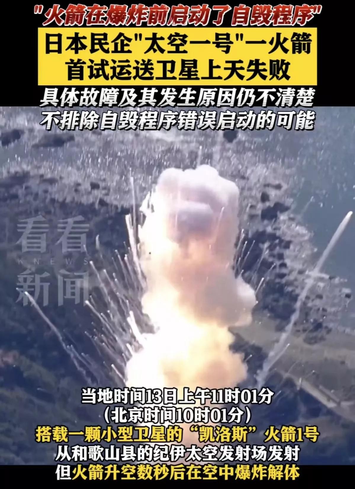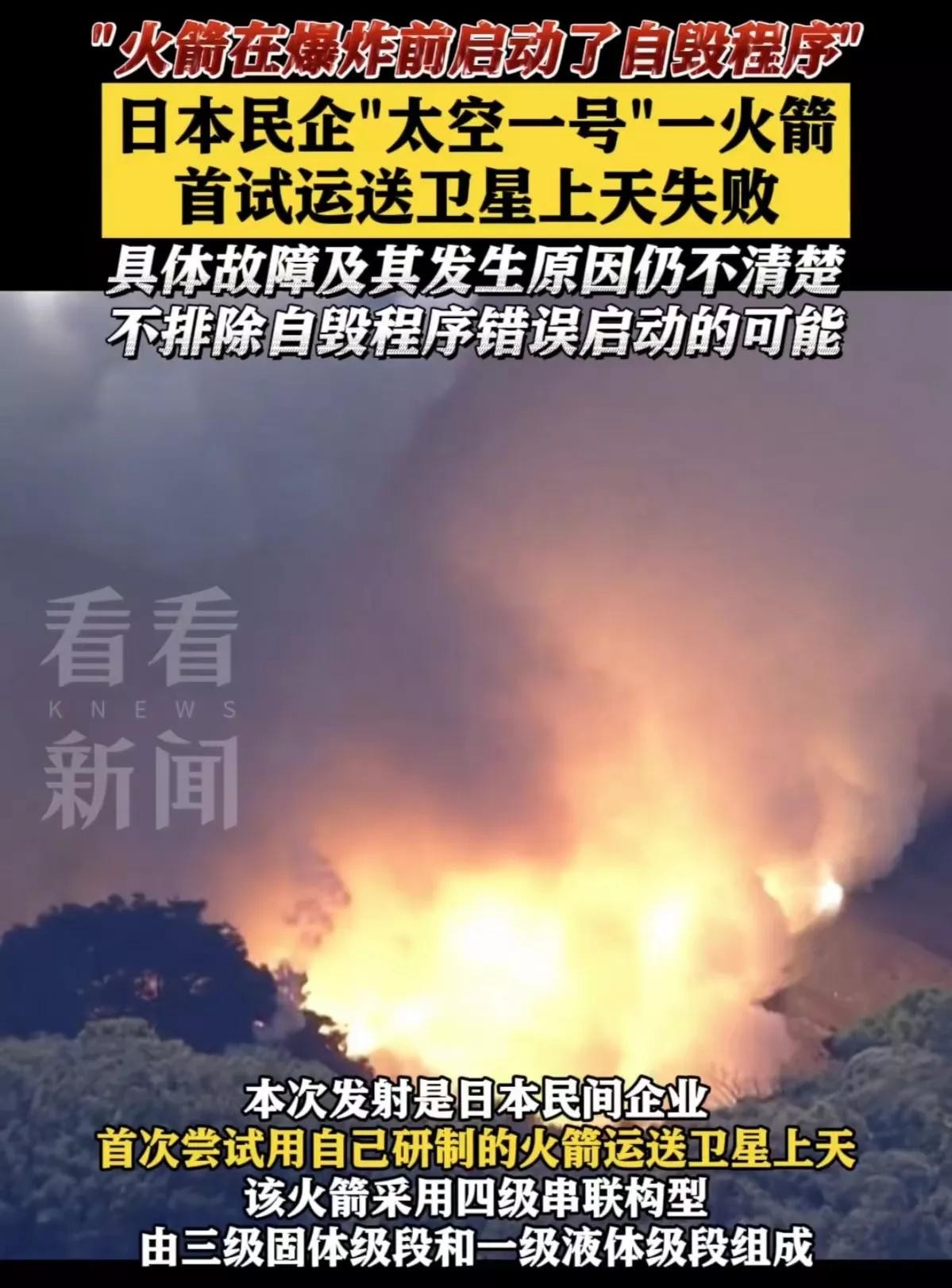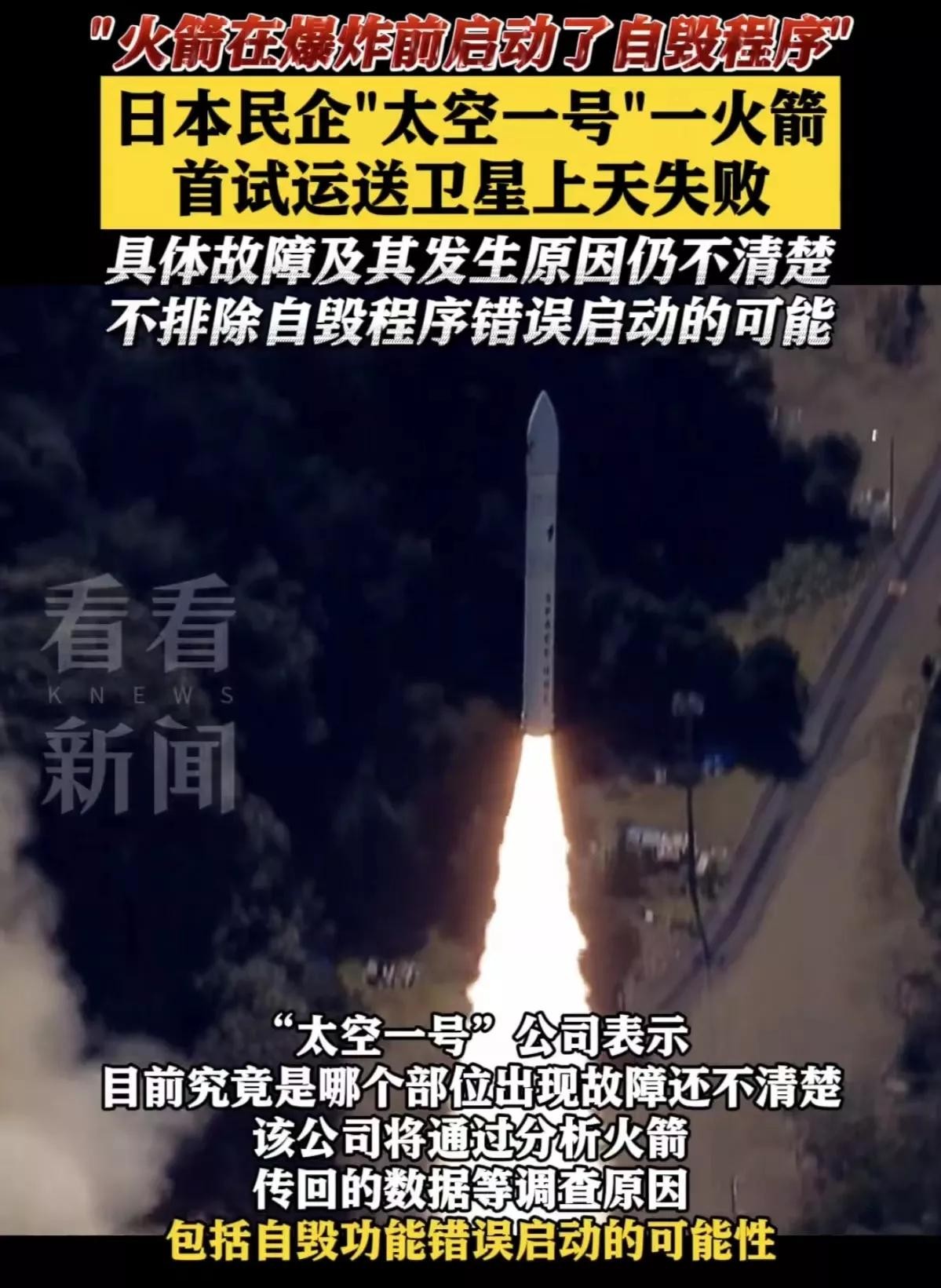 火箭自毁前启动,日本商业航天公司“太空一号”发射失败!