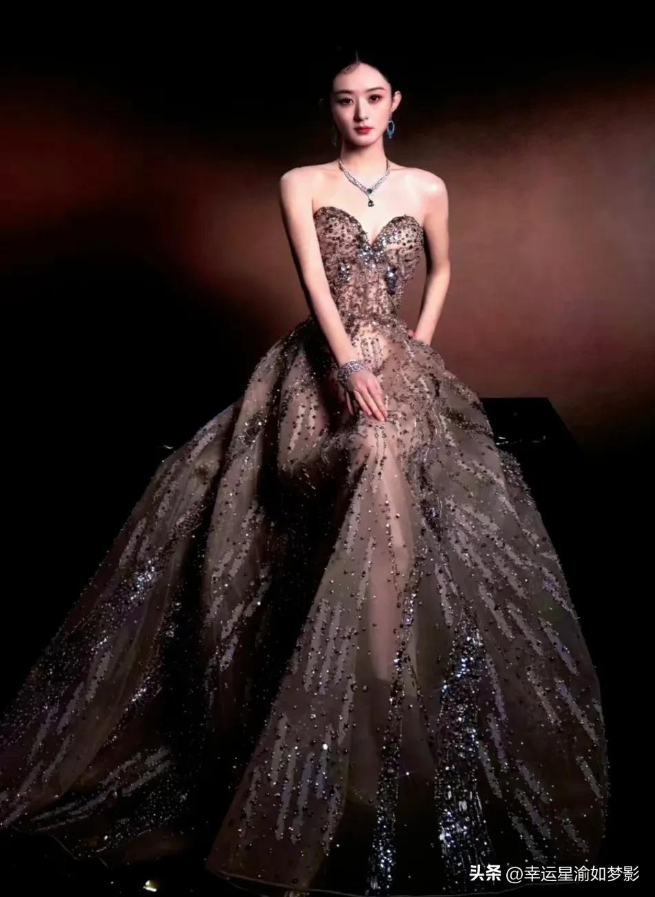 赵丽颖穿修身剪裁黑色蕾丝吊带长裙,高开叉裙摆灵动浪漫优雅!